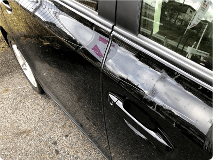 右側面、前から後ろまで傷をつけられてしまいお預かりしました。