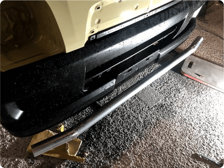今回はアウトドア使用のカスタムカーなのでより雰囲気を出すためにバンパーガードを製作しました。